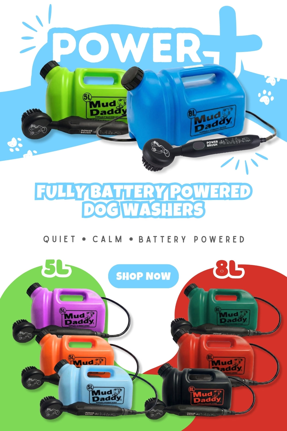 Clean smarter, not harder. Compact design, soft brush head & mess-free shampoo application. Perfect add-on to your Mud Daddy Portable Washer.